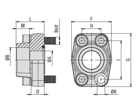 | Vöruheiti | Þrýsti þol m.v. 8.8 bolta BAR | Þrýsti þol m.v. 10.9 bolta BAR | Stærð „ | Þver mál A mm | Þver mál B mm | Hæð D mm | Breidd F mm | Lengd G mm | Breidd H mm | Lengd I mm | Hæð L mm | Hæð M mm | Gata mál K mm | Vöru númer |