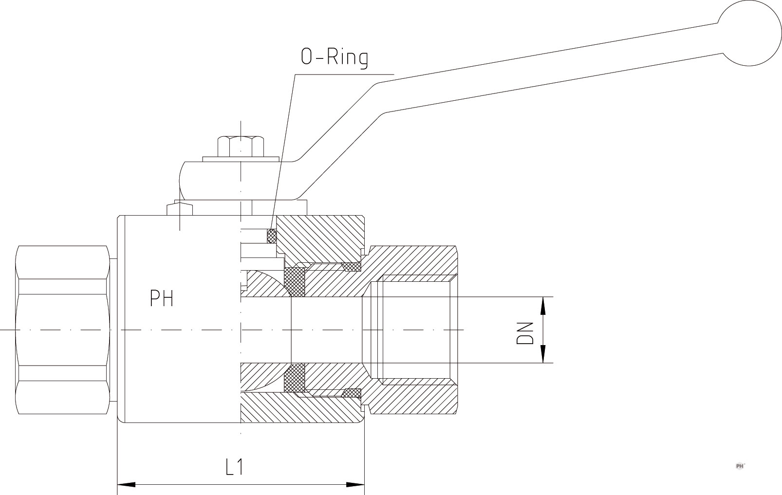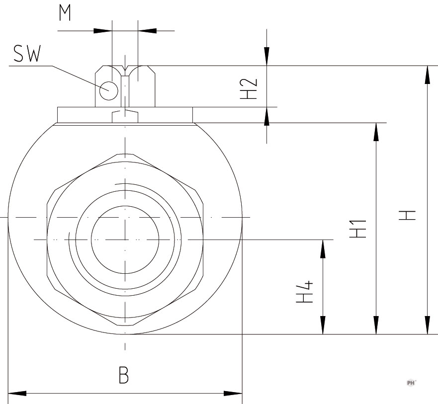 | Vöruheiti | DN | Þrýstiþol BAR | Utanmál B mm | Hæð H mm | i mm | Lengd L mm | Utanmál rörs RA | Lykilmál á loka SW | Vörunúmer |