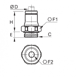 | Vöruheiti | Rörastærð D mm | Gengjur C BSP/M | Hæð E mm | Lykilmál F1 | Sexkant mál F2 | Hæð H mm | Vörunúmer |