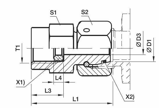 | Vöruheiti | Röramál D1 | Gengjur T1 BSP | Gegnumborun D3 mm | Hæð L1 mm | Hæð L5 mm | Lykilmál S1 | Lykilmál S2 | Þrýstiþol BAR | Vörunúmer |