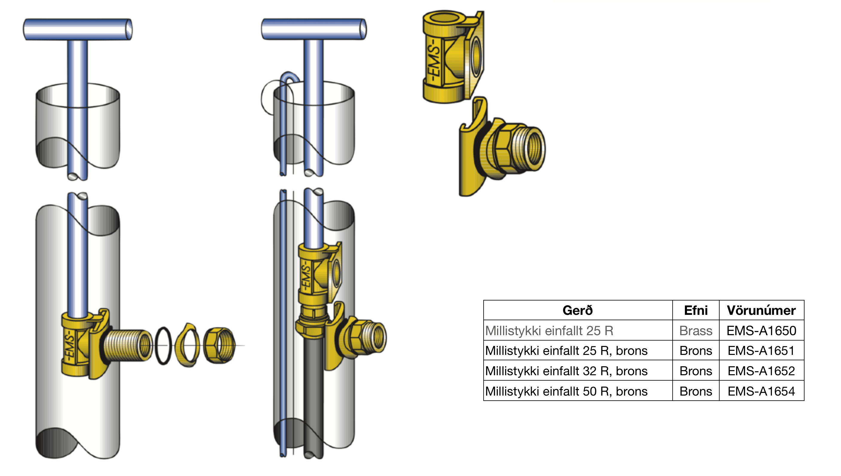 Millistykki í borholu 50 R, 2" - brons
