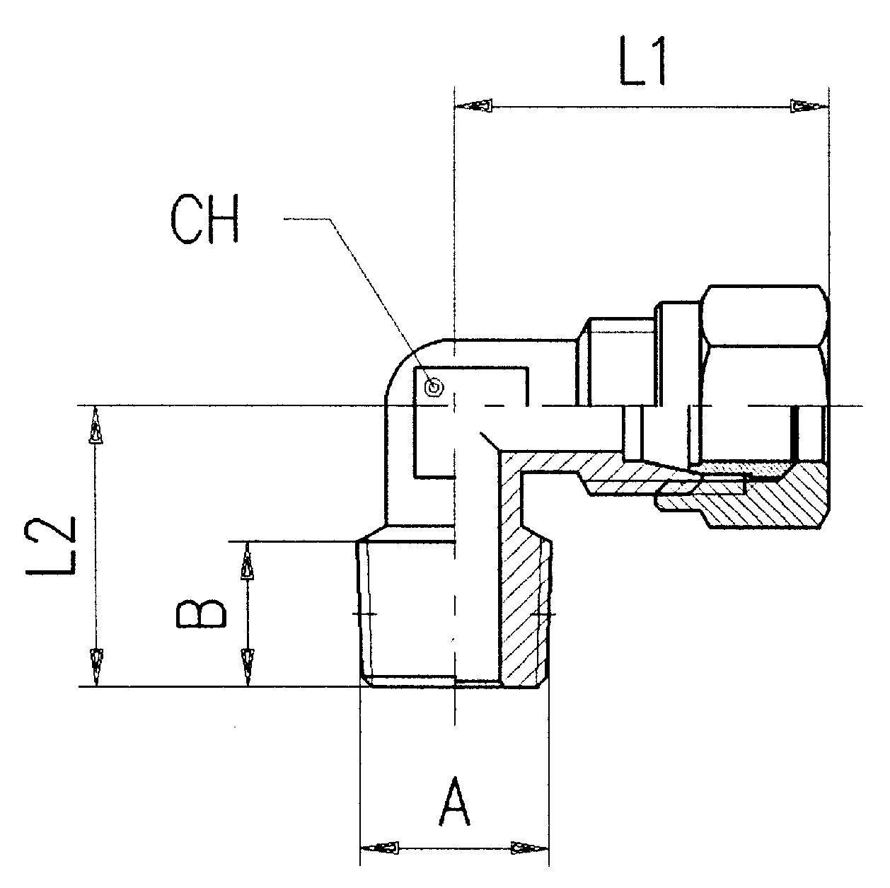 | Vöruheiti | Rörstærð mm | Gengjur BSPT A | Hæð B mm | Hæð L1 mm | Hæð L2 mm | Lykilmál CH | Vörunúmer |