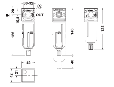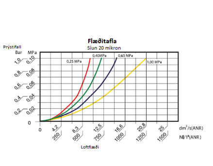 Flæði við 10 BAR: 1250 Nl/mín
