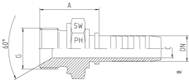 Slöngutengi með 60° þéttisæti og BSP nippli.