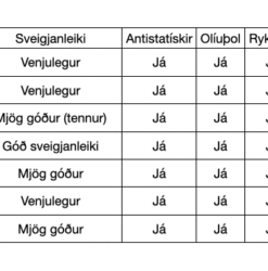 Hitaþol: −30°C til +70 °C.