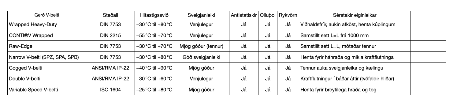 V-belti fyrir krefjandi drif og þungavinnu.